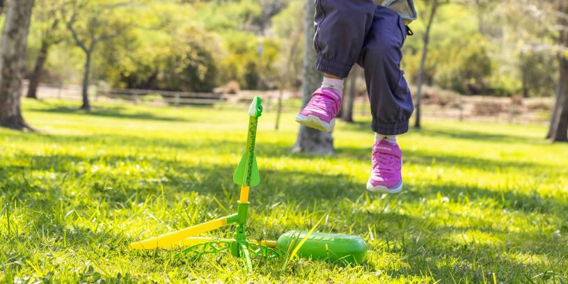 Stomp Rocket is the company responsible for kid-powered toys that encourage physical activity and S.T.E.M. learning at the same time. The simple design ensures an easy setup with a no-mess operation and zero electrical or fire hazards due to fuel. Your child connects the launch pad to the launch base, loads the rocket, and starts stomping prehistoric creatures into the troposphere, the lowest layer of Earth’s atmosphere. If you didn’t know that, congratulations, the learning has already begun!