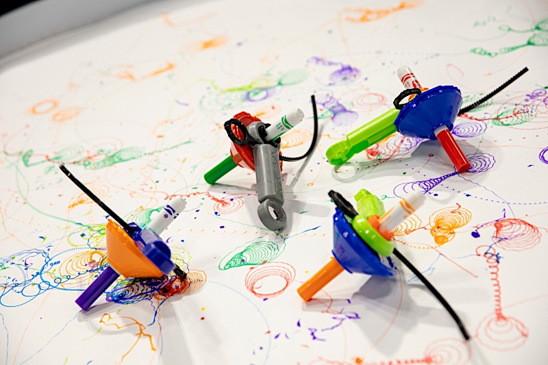 Earlier this year, Crayola released a thrilling new product that combines creativity with a sense of adventure. Crayola Colourwhirls employ the timeless appeal of a spinning top to create art. Similar to Alexander Calder’s groundbreaking mobiles, Crayola Colourwhirls embrace energy and chance to produce mesmerizing designs — these art tools take rotational kinetic energy and transcribe it to paper in wild, chaotic lines.