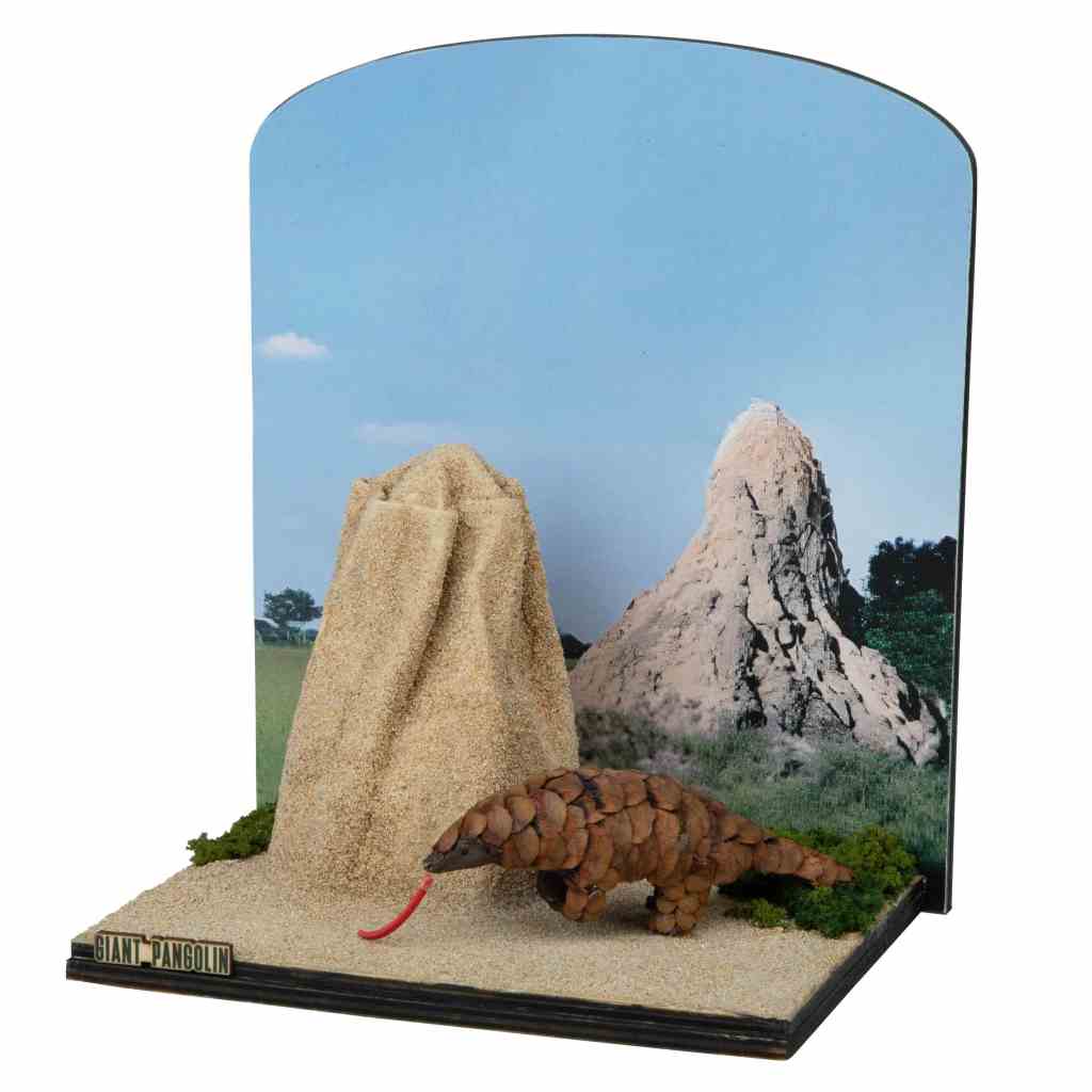 The giant pangolin is a shy African mammal that is covered in scales and uses its powerful claws to dig for ants and termites. When threatened, this endangered species rolls into a tight ball and depends on its scales for protection. It is said this curious creature resembles a walking pinecone, and that’s exactly what you use to help you craft the animal in this ingenious kit.